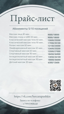 Беркана — это доступный массаж от опытных мастеров с широким спектром услуг, онлайн-записью и комфортной атмосферой для полного расслабления.
